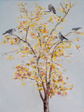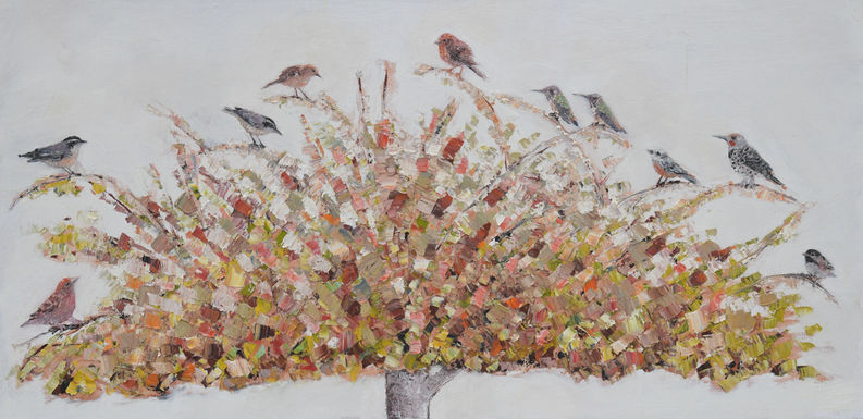 Each picture starts with an idea, in this case a tree filled with birds. This is the beginning of an adventure, where changes and unexpected surprises are expected and welcome.