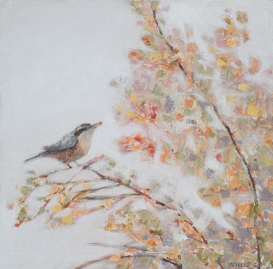I feel a sense of delight in watching birds disappear into a tree, and also in the colors that come to mind.