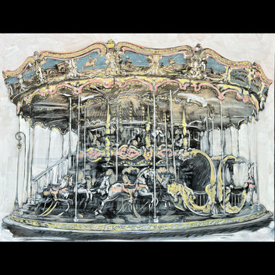 I have always loved that drawing captures the essence of something, and I prefer bold lines and gestures to mere photorealism. I am inspired by expressive marks in ancient cave art, the movement in old master drawings, and the perspective and volume conveyed by architectural sketches. For decades I have worked with layered materials and collage techniques, but I want these materials to subtly emerge as my work is experienced. I include antique book pages, sheet music, stencils, and paint into my backgrounds to create a sensual surface, reminding the viewer that handmade artwork is a real object, as well as idea and image, and allowing the content of the materials and pages to enhance the story told by the drawing. I use watercolor pencils, graphite, inks, and pastels to draw, my lines blend with paints as I alternate between painting and drawing. These blurred boundaries add volume, and create a sense of movement. I like my subjects to highlight what may be overlooked in everyday life, playing with memory, movement, and energy and I seek to engage the viewer in a way that invites reflections on time, travels, and the vibrancy of life.