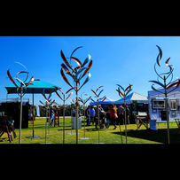 I have always been fascinated with kinetics, so I began creating my verdigris copper and stainless steel KINETIC WIND SCULPTURES. I hand forge every piece and artistically position it all onto a precisely designed framework. All of my sculptures counter rotate which makes them truly mesmerizing! The beauty of working with copper is that the verdigris on each blade can give the appearance of being "perfectly imperfect".
