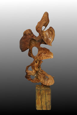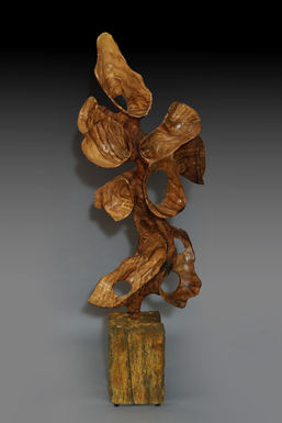 An eclectic array of carved sculptures will be exhibited from large floor pieces, pedestal style pieces and wall sculptures, out of various woods, some with embellishments from copper patina, stone inlays and glass.