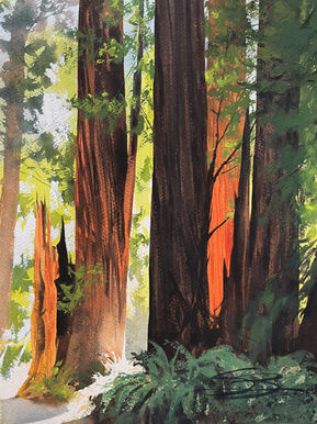 I paint in a loose, expressive manner that approaches realism while simultaneously playing with water, gravity, and pigment. I was born and raised in Northern California, and have a deep love for the rolling woodlands, tawny slopes, and stark, bold shorelines this area has to offer.